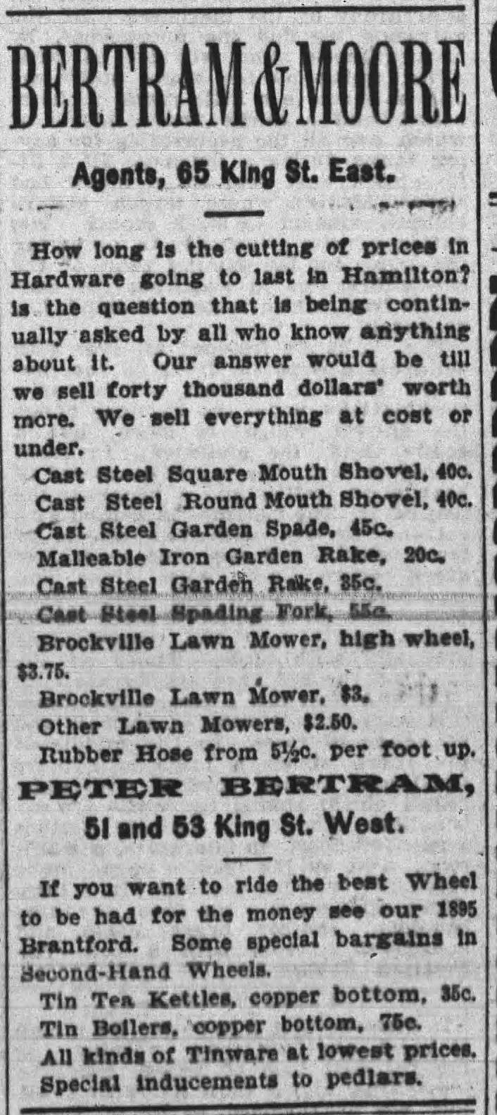 1895 Advertisement Hamilton, Canada