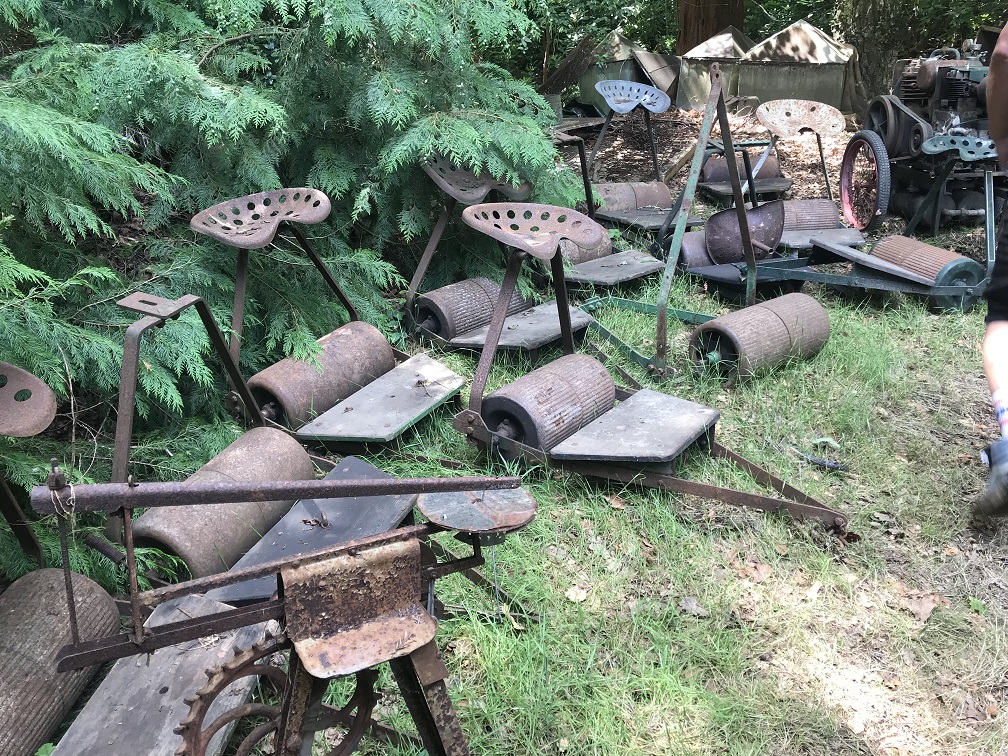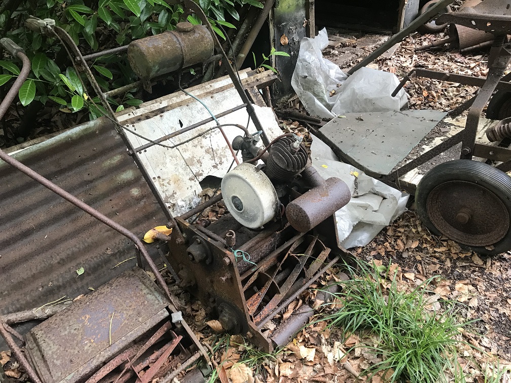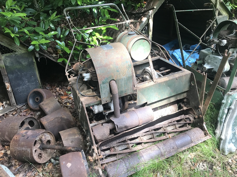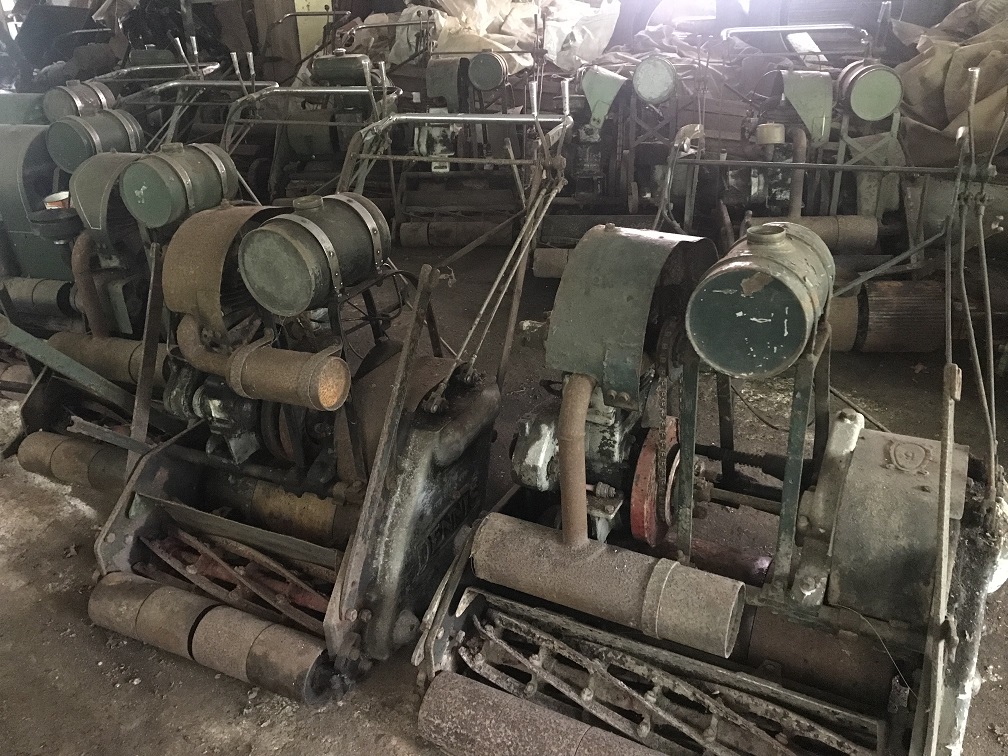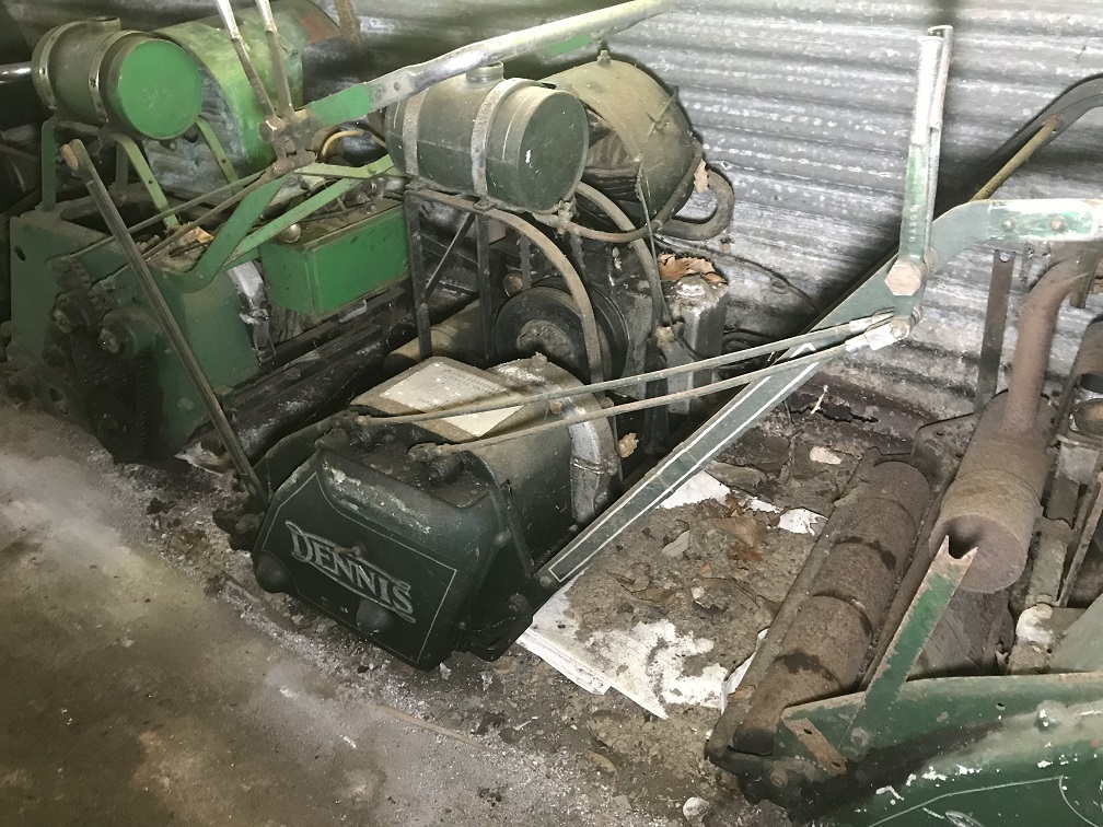 There are over 40 Dennis mowers dating from the 1920s/30s through to the 1960s/70s in various states of repair. These are generally "non-runners" and several are incomplete but there are plenty of spares so it may be possible to find "missing" parts to make up a complete machine. In addition, there are approximately 15 machines from other manufacturers.
