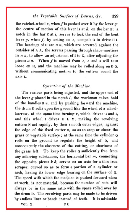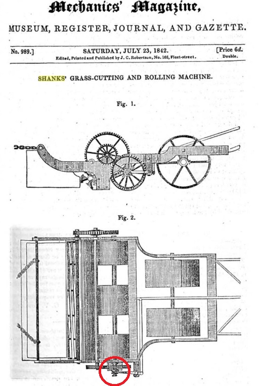 Some contemproary notes in the Mechanic's Magazine of 1842, on Shank's Pony Mower.