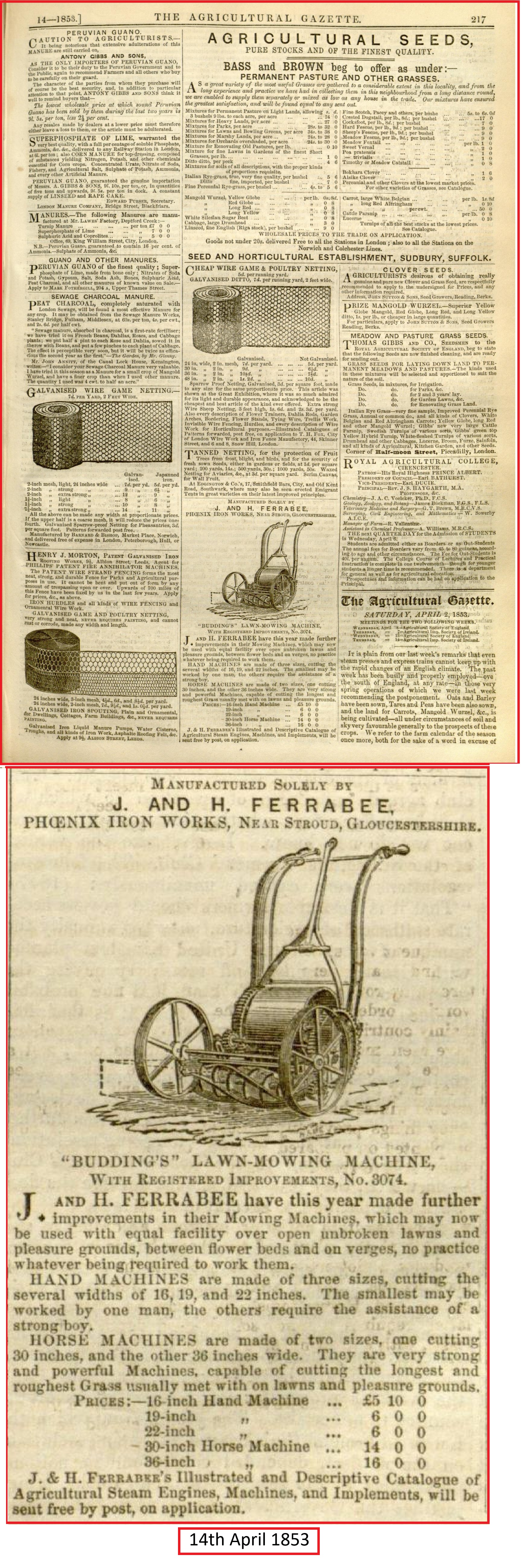The so called "Buddings Improved"   as per my 1852 posts,  we find 1 year later advertisements in The gardeners Chronicle / The Agricultural Gazette.