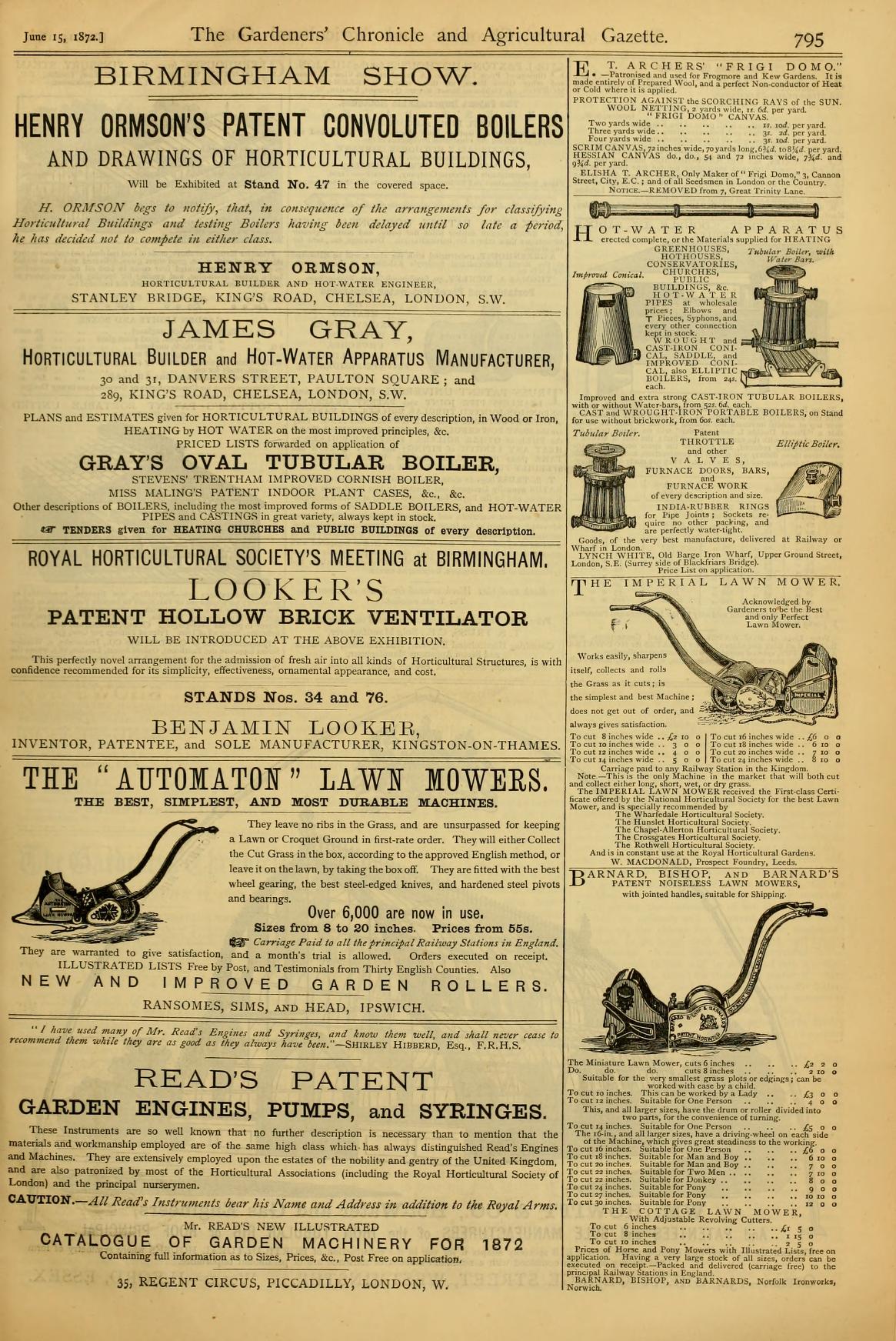 An Interesting Mower, advertised in 1872, I had not heard of before.