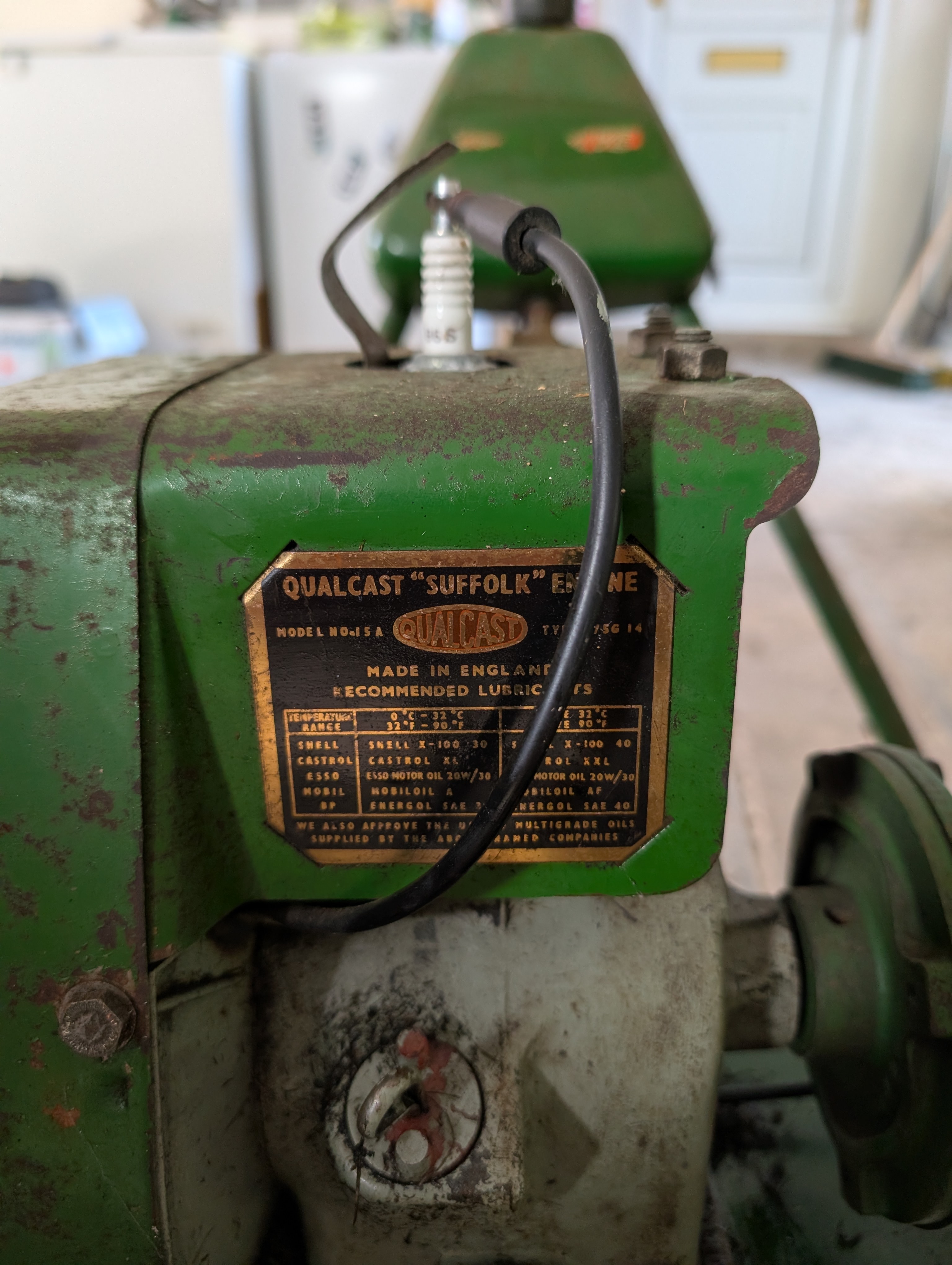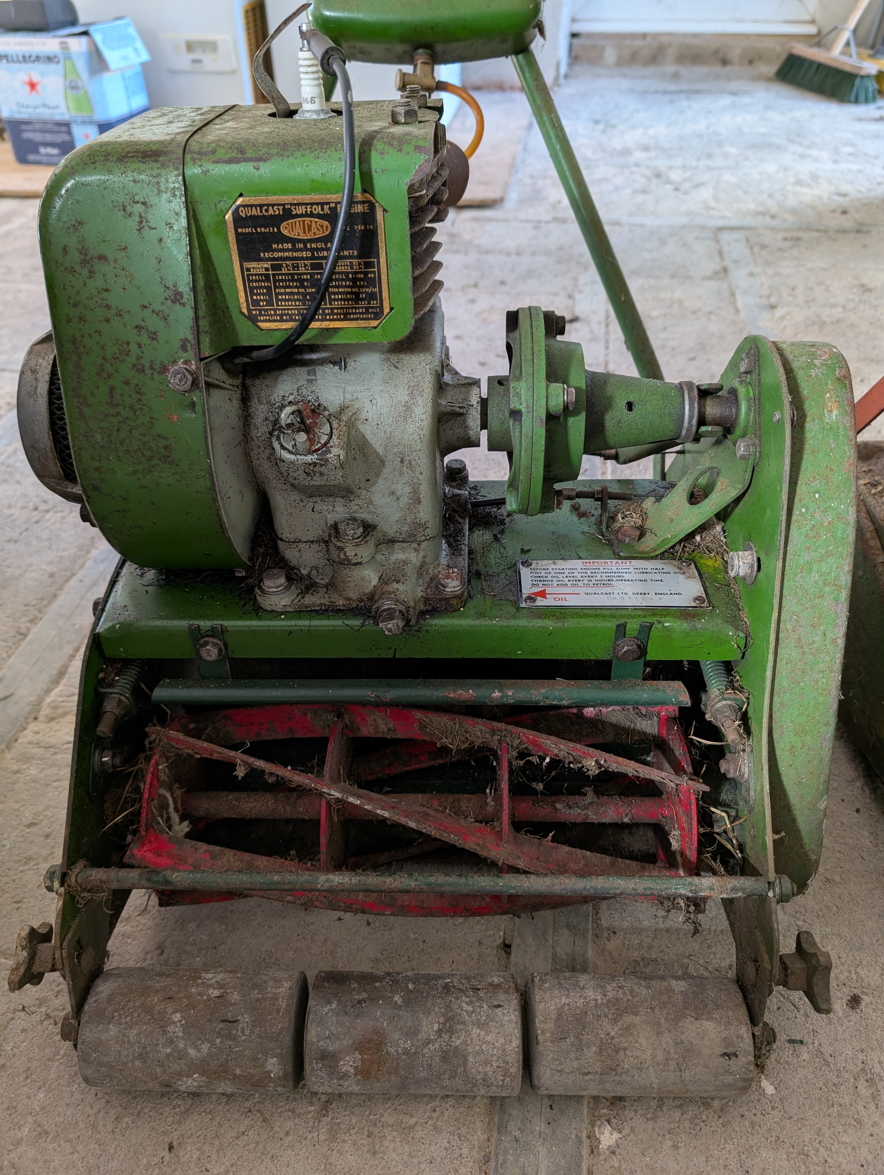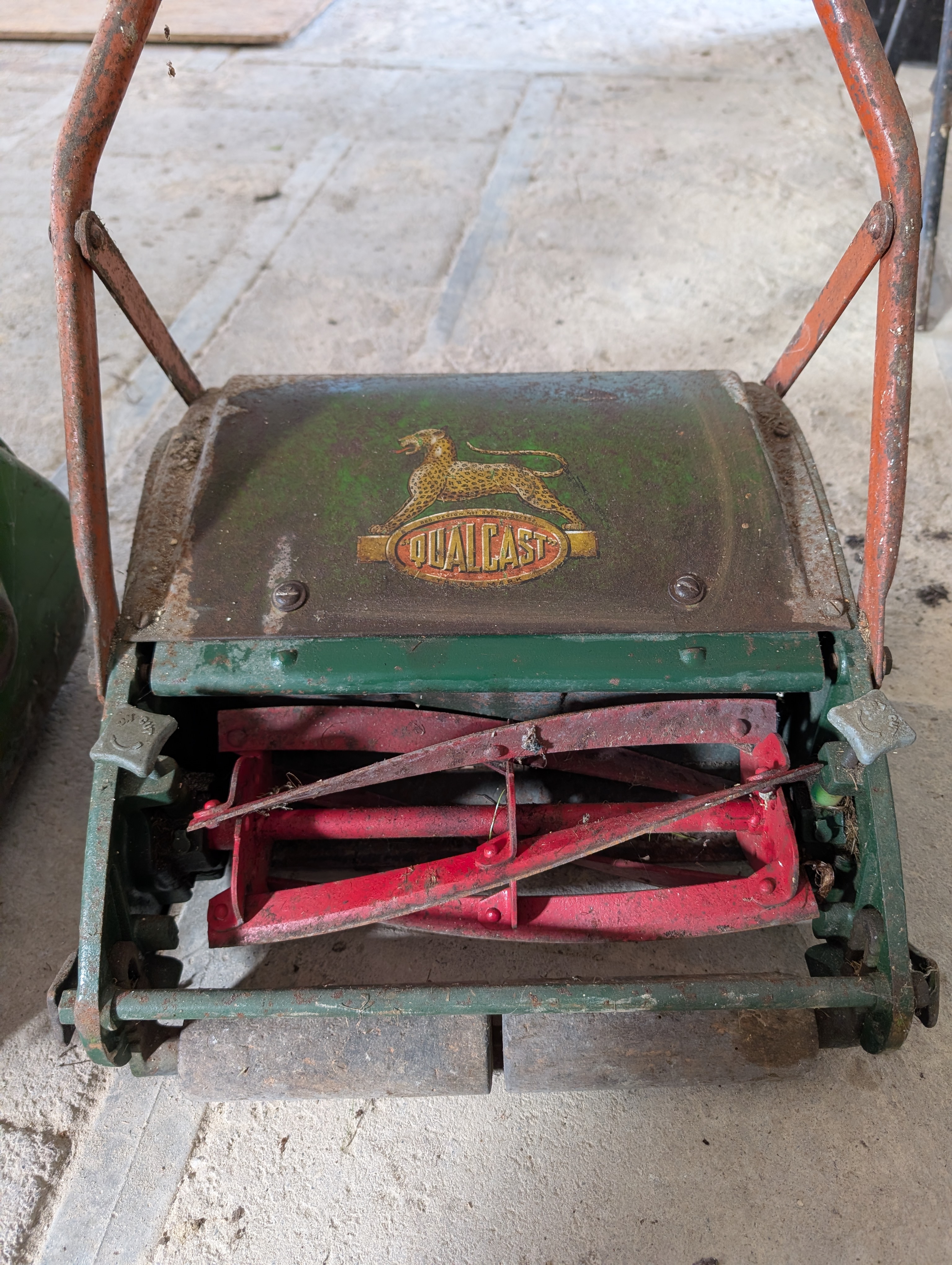 Shed stored and untested. Roll well and 2 grass boxes included. 1 petrol and 1 push model. Unclear of exact models but Suffolk engine plaque. Model 15a Type 75G14