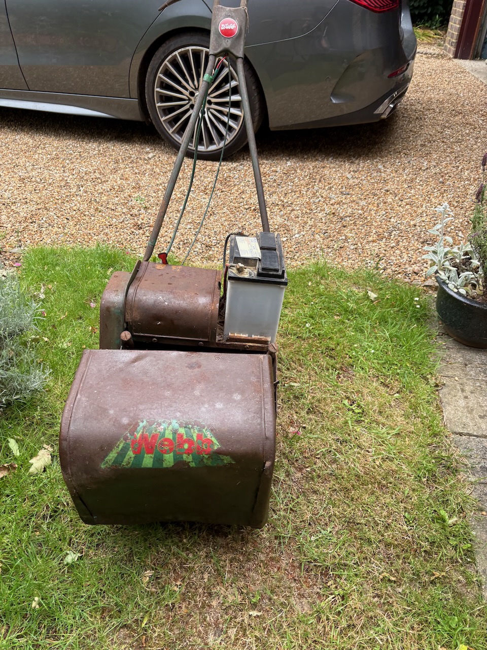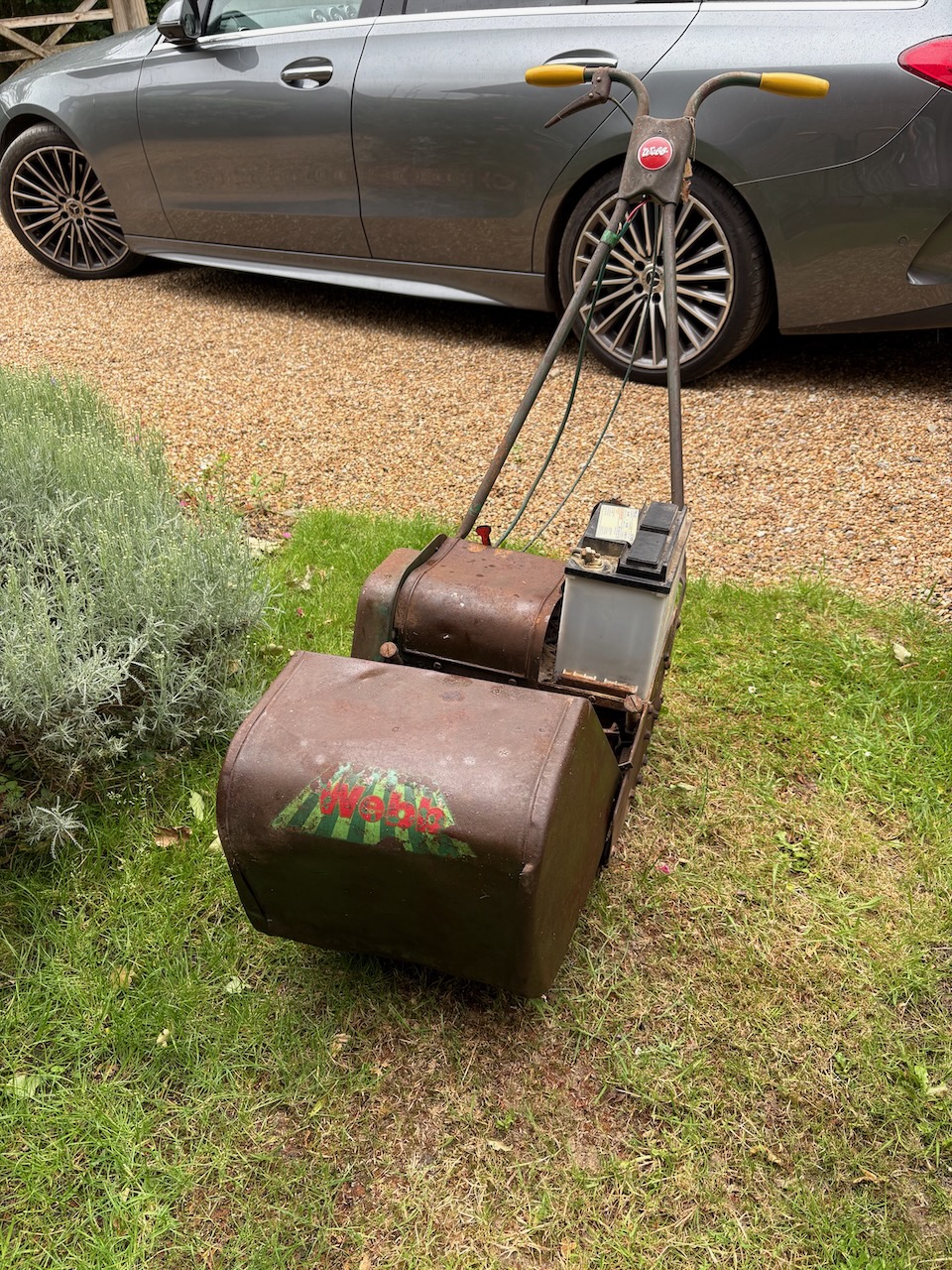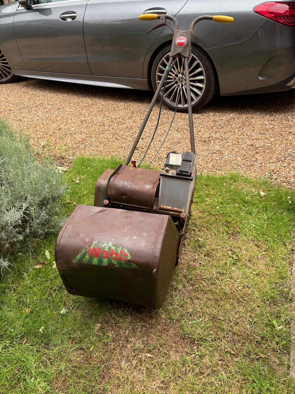 This is a rare opportunity to buy an early battery lawnmower used by my father in the 1970s which was given it by a neighbour and then subsequently used by myself. It used to produce a beautiful striped lawn but now needs restoring to working condition after decades of lying idle in my garage.