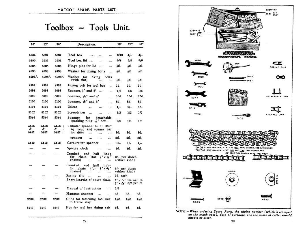 Although I have had a copy of the parts list for years - and have seen dozens of the mowers in question - I had never thought much about there being different sizes of toolbox. I'll need to compare my 14" and 22" models side-by-side to have a proper view on that. Also interesting is that the toolbox is clearly wooden. The all-metal design must have come in later.