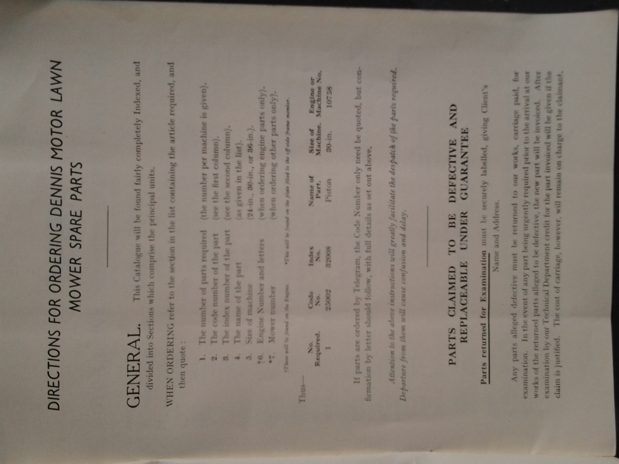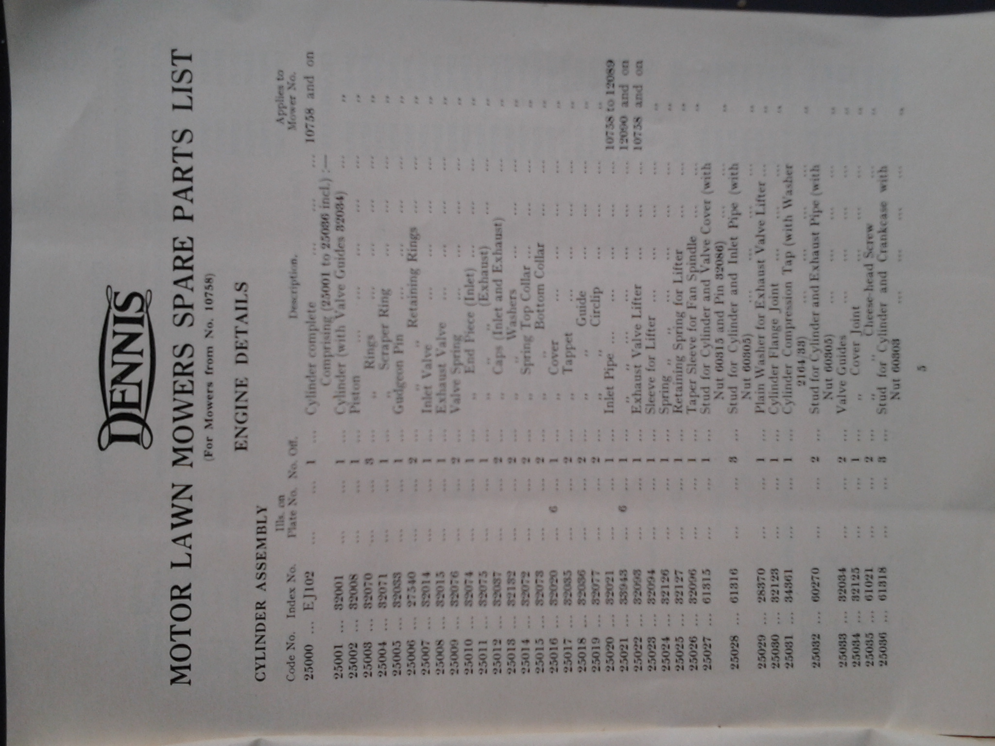 I HAVE A DENNIS SPARE PARTS LIST BOOKLET.