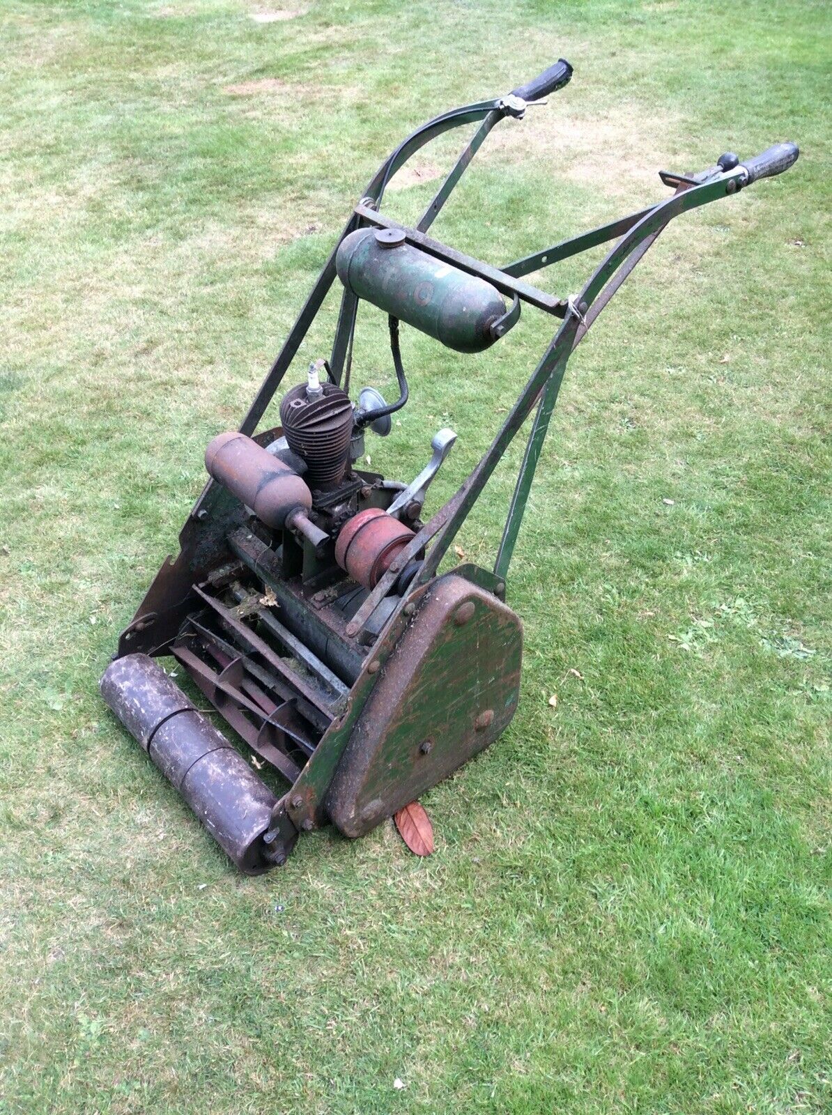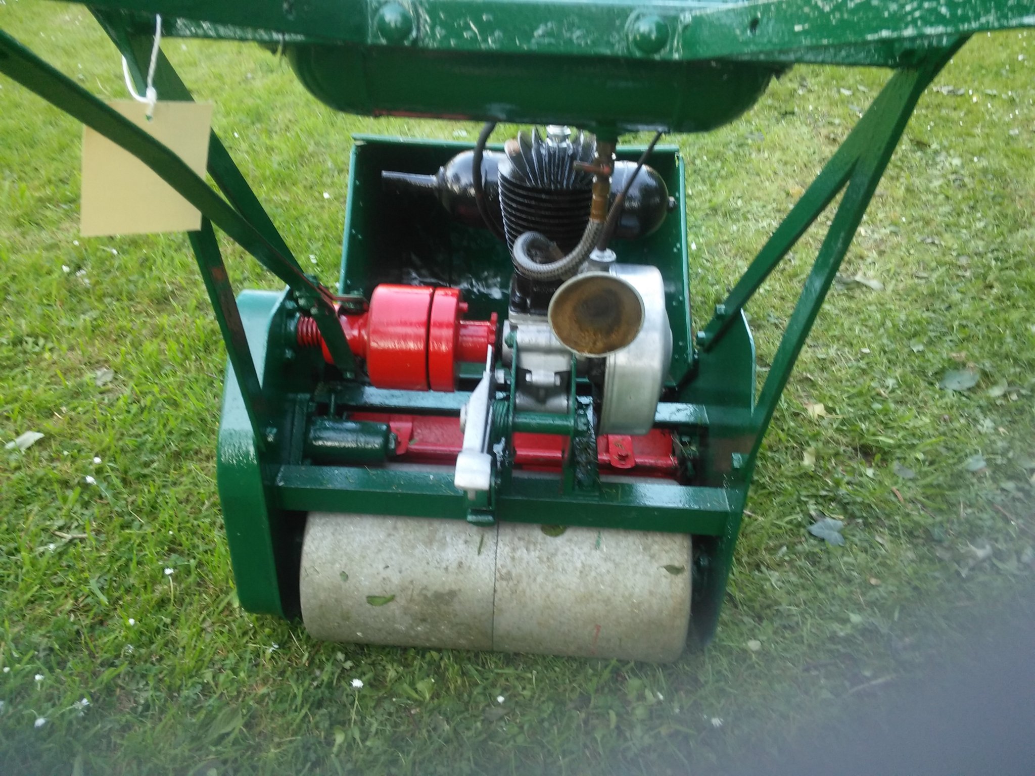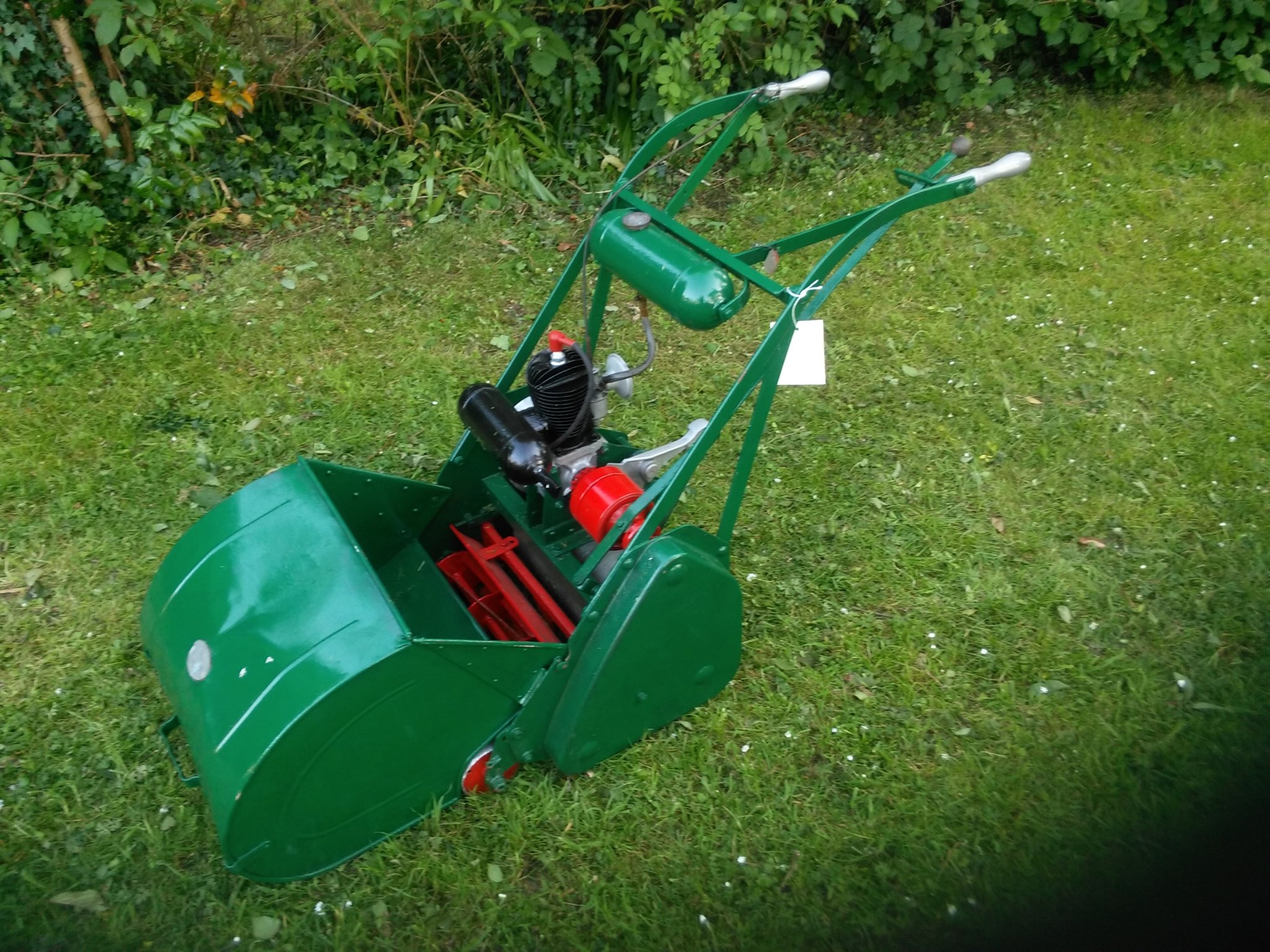 These machines look as close as you can get to my own ...braced handles...large dia. front rollers ...catcher attachment via. 'dowel' pin and flanged bearing surface, and small cut-out in the side plate ...large dia. clutch ...Villiers (Mk VIIIc I think).