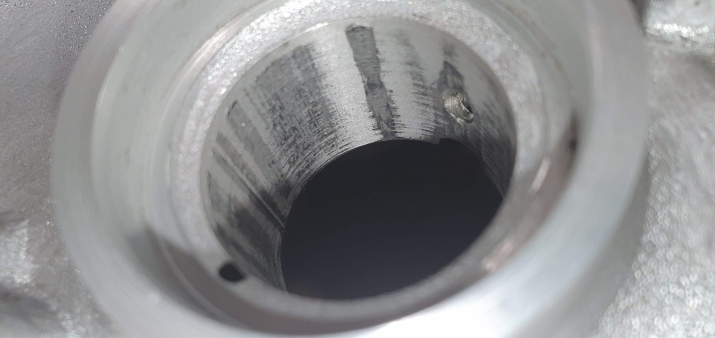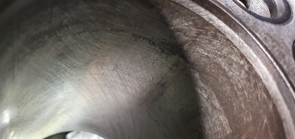 Interesting colouration of the piston walls on each side of the gudgeon pin