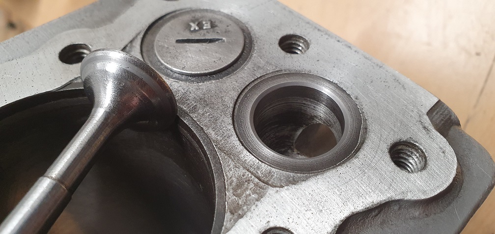 Happy with the intake, and the exhaust hasn't cleaned up too bad. In an ideal world the exhaust valve seat would do with a grind, probably with 3 angles to reduce as the valve face contact band as its a bit wide, but then the block would probably need to be reamed out to accommodate a valve guide (none fitted to this particular engine) before being able to then cut the seat accurately, due to the wear in the current 'guide' area on the exhaust side. I'll just have to see how it runs when it's all back together, but hopefully this won't prevent it from being a serviceable grass cutting machine. Maybe one day I'll treat myself to a set of Neway cutters and I can learn a new skill....