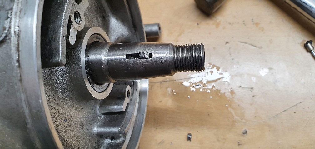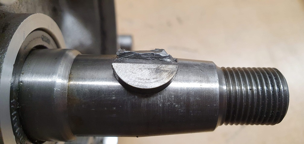 and out at last, with no unintended damage :) There may be other better ways that I could have tried If I had more tools/equipment such as some sort of gas torch to try heating and cooling the key etc. This done the job however, and allowed me to proceed with the crank removal to check the bushings