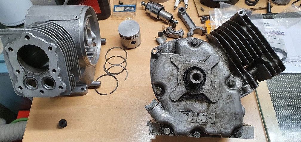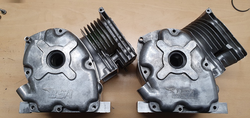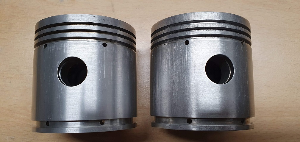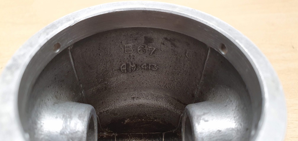 The pistons are both different in terms of manufacturer and markings. The older engine has the BSA logo on the inside wall of the piston as well as the part number 87-1555