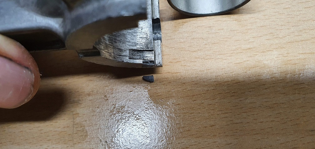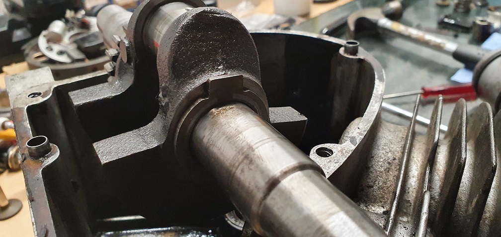 One slight issue, which I am hoping is a non-issue, is that when fitting the new conrod bearing shells, GENTLY pushing the rod shell half into place, a tiny corner fragment of the groove where the locating tang sits came away. This must have been a weakness in the casting as it took no effort to fit the bearing shell and this fragment simply came away as I did. The bearing itself is fine, and can still locate in the locating groove on the rod half ok, so I am hoping this will still be alright? Do these locating tangs help to prevent any lateral movement of the bearing shell? If so then although one side of this tang has the inner wall of the locating groove to sit against, around half of the outer wall of the groove is no longer there.