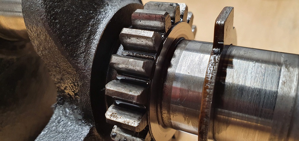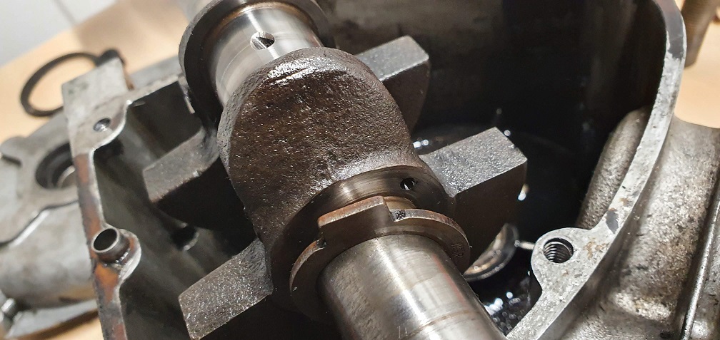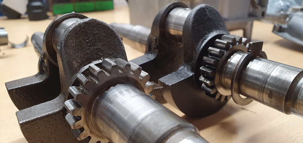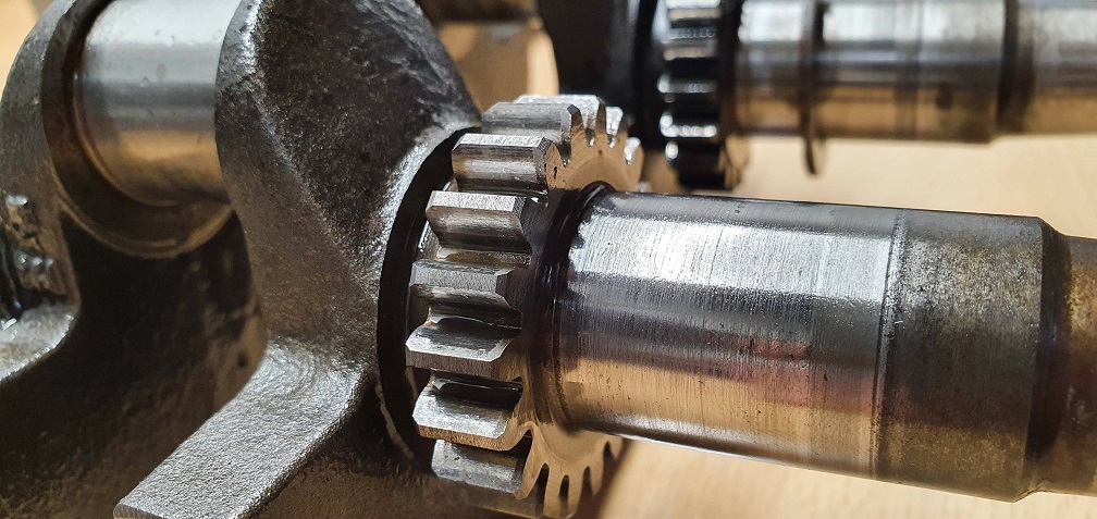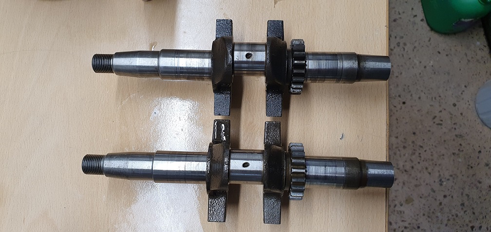 Both crankshafts are near enough identical, and share the same part number of 87-1531, however there is one slight difference - the crankshaft that uses the thrust washers has a slightly raised step on the outside face of the camshaft pinion