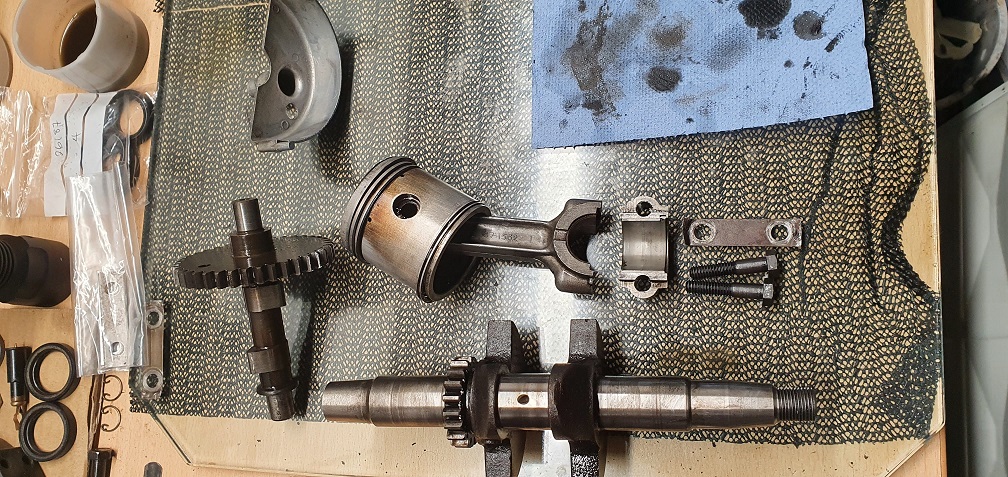 Before fitting the piston and rod, I did fit the crank to check fitment with the new split bush bearing - it was snug but felt very smooth. When the crankshaft oil seal was fitted and the same was carried out, that's when the rotation started to feel a bit stiffer. I can see the oil seals making good contact with the shaft (they were lightly oiled as per the book), so combined with the other new oil seal, regardless of the new piston rings, it would be fairly stiff anyway. The rod and big end bearing cap were dry fitted to the crank before hand and rotation was nice and smooth with no play, so I think things are fine and will bed in nicely once she comes to life.