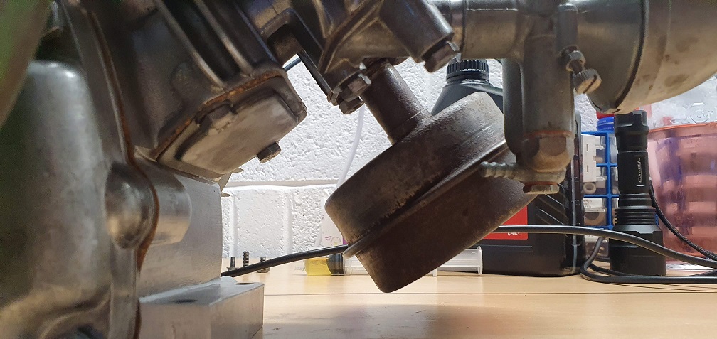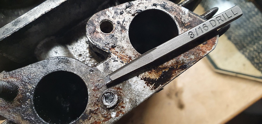 I wanted to tackle the stuck 1/4" UNC exhaust fixing bolt that sheared off when I tried to undo it