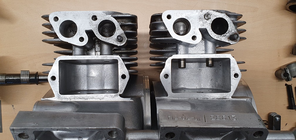 Here's a picture comparing both engines - showing the difference between the older block with no valve guides, and the newer one. The newer one with the valve guides has solid alloy between the 2 guide outer columns, whereas the older block is hollow there. Also the newer block has the F12 serial number at the bottom and the older one has the older RS119B style serial on the opposite side