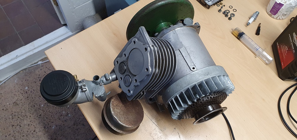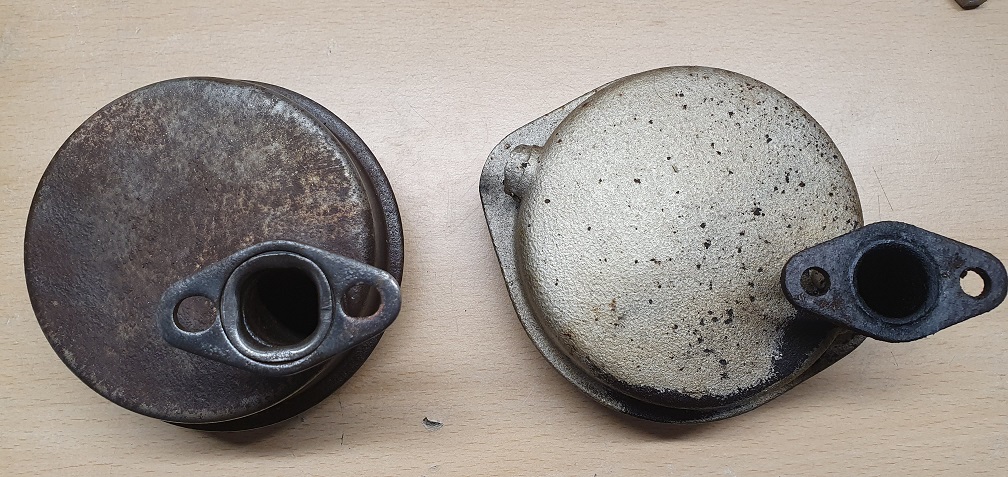 I did promise myself that I wouldn't paint these 2 mowers after doing the paintwork on my Suffolk, and instead leave them 'as is' and just clean up the existing metalwork/paint as much as possible, while ensuring they are fully mechanically overhauled. I already broke that promise when I painted the Amal carb air intake covers as they looked a bit sorry for themselves. Perhaps I could extend that to just doing the exhaust silencers as well. I have some very high temp silver spray which I used successfully on the Suffolk exhaust and it came out well. This other silencer has had a coat of some sort of silver paint in it's life, so perhaps I will clean both up with the wire wheel and then coat them in that paint......