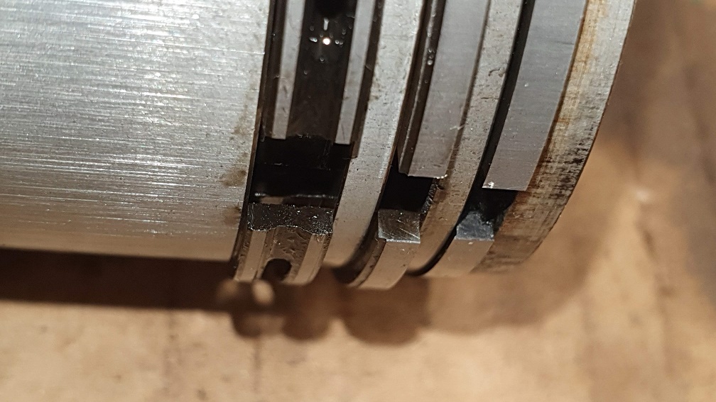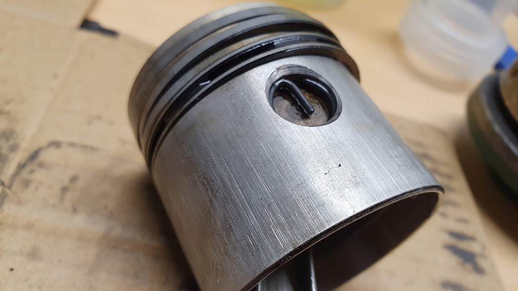 A lot of scoring on the skirt of the piston, however a lot of used Suffolk pistons seem to have this appearance, so doesn't necessarily mean the piston has been catching the cylinder walls due to excess bearing movement does it?