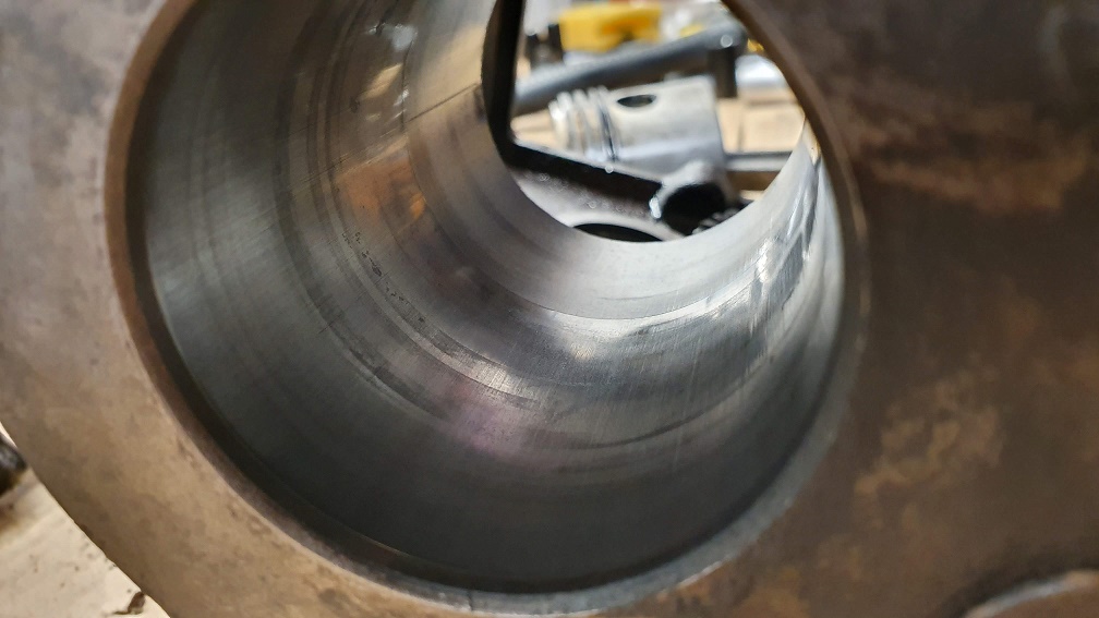 As far as I can tell, the cylinder looks ok. The usual expected glazing on the upper section, compared with the lower area where the piston doesn't travel.
