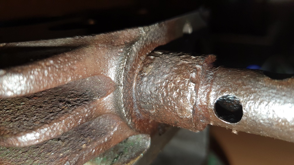 I think it's just the picture making it look bent - maybe due to teh left hand threads adn the lines in the cardboard. Checking it front on it certainly looks straight. A couple more picture of the crack - doesn't seem to run very deep and doesn't show at the end of the threaded end at all