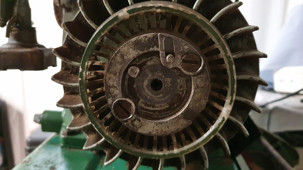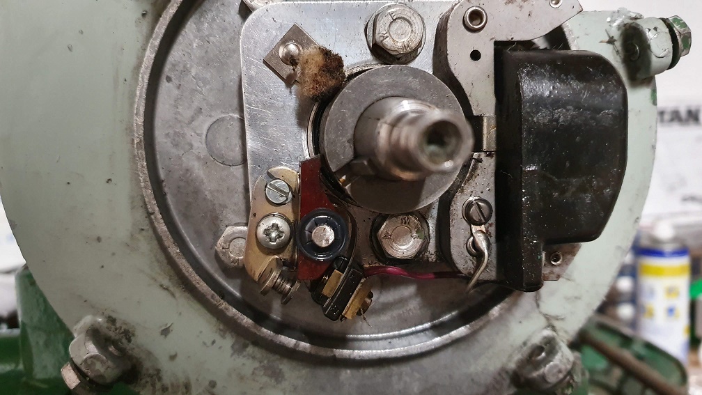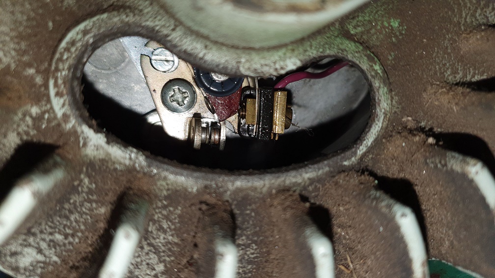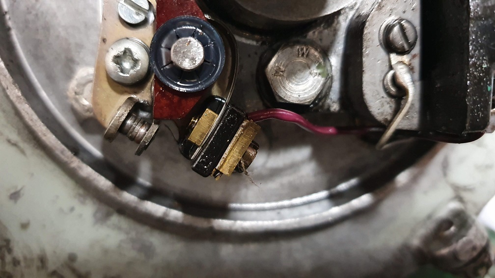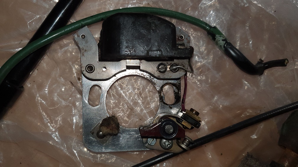 Things were very wet and oily behind the flywheel all around the points and coil - perhaps a weepy crankshaft oil seal?
