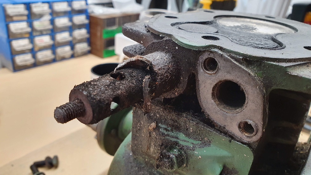 Good shout on the gasket material Chris - it's very similar texture to the exhaust pipe gasket which was all broken up. Not sure how it would have ended up in there - I don't think the head had been off at all and did have the gasket in place which looked fine other than being a bit squashed. If a previous owner had the spark plug out and was fiddling around or putting oil down through the plug hole for storage or something like that, I guess it could have got in then?