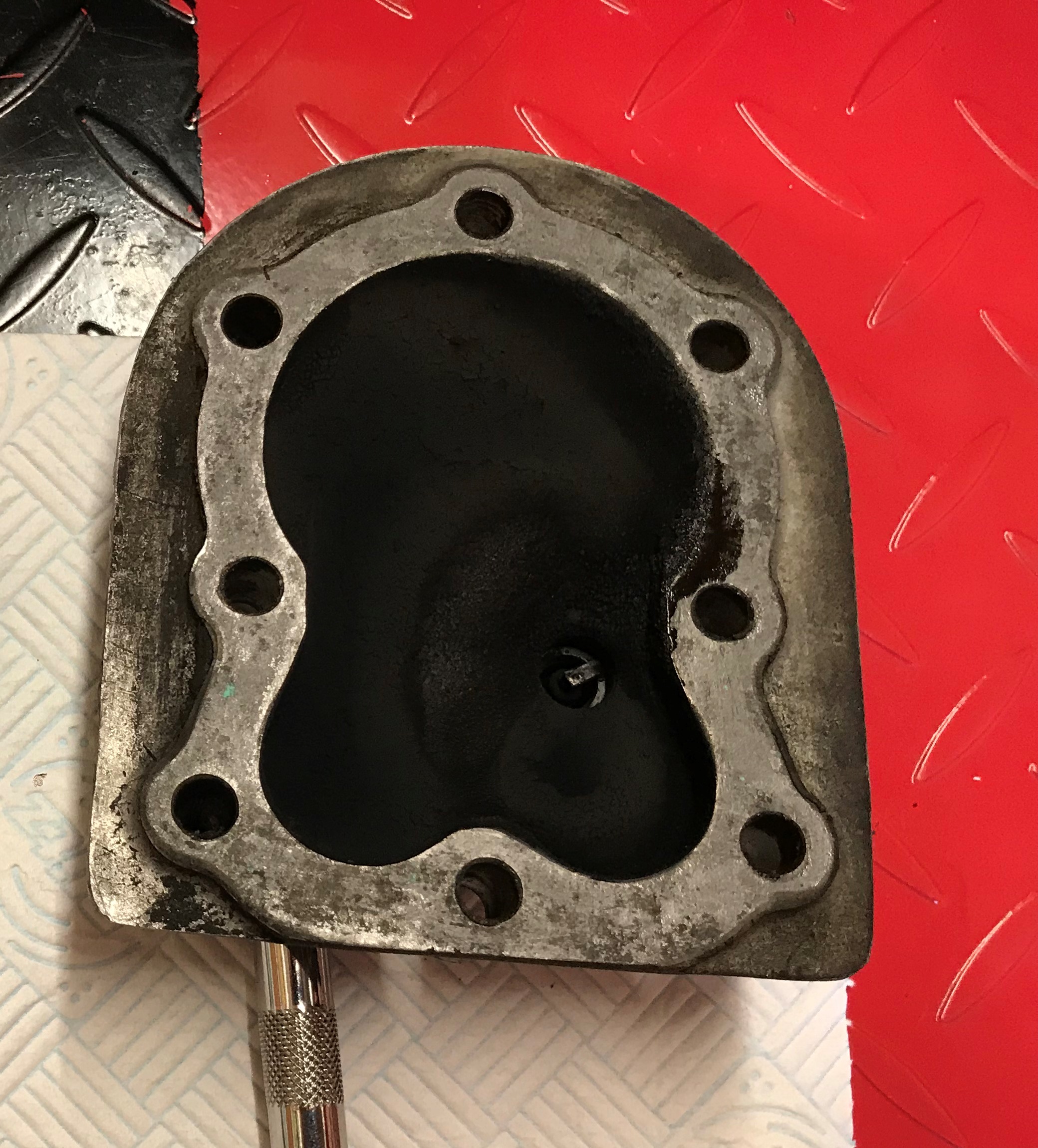 The valve chest cover was shaped more like a canoe, managed to get the outer edges straightened up in a big vice with some flat bar to true in the jaws, then got it on the plate and finished with some 80 to 400, million miles from where it was but not sure I trust it yet. The chest cover seating surface was in good shape once all the RTV was removed (pain in the..) so with a new gasket hope it will be ok.