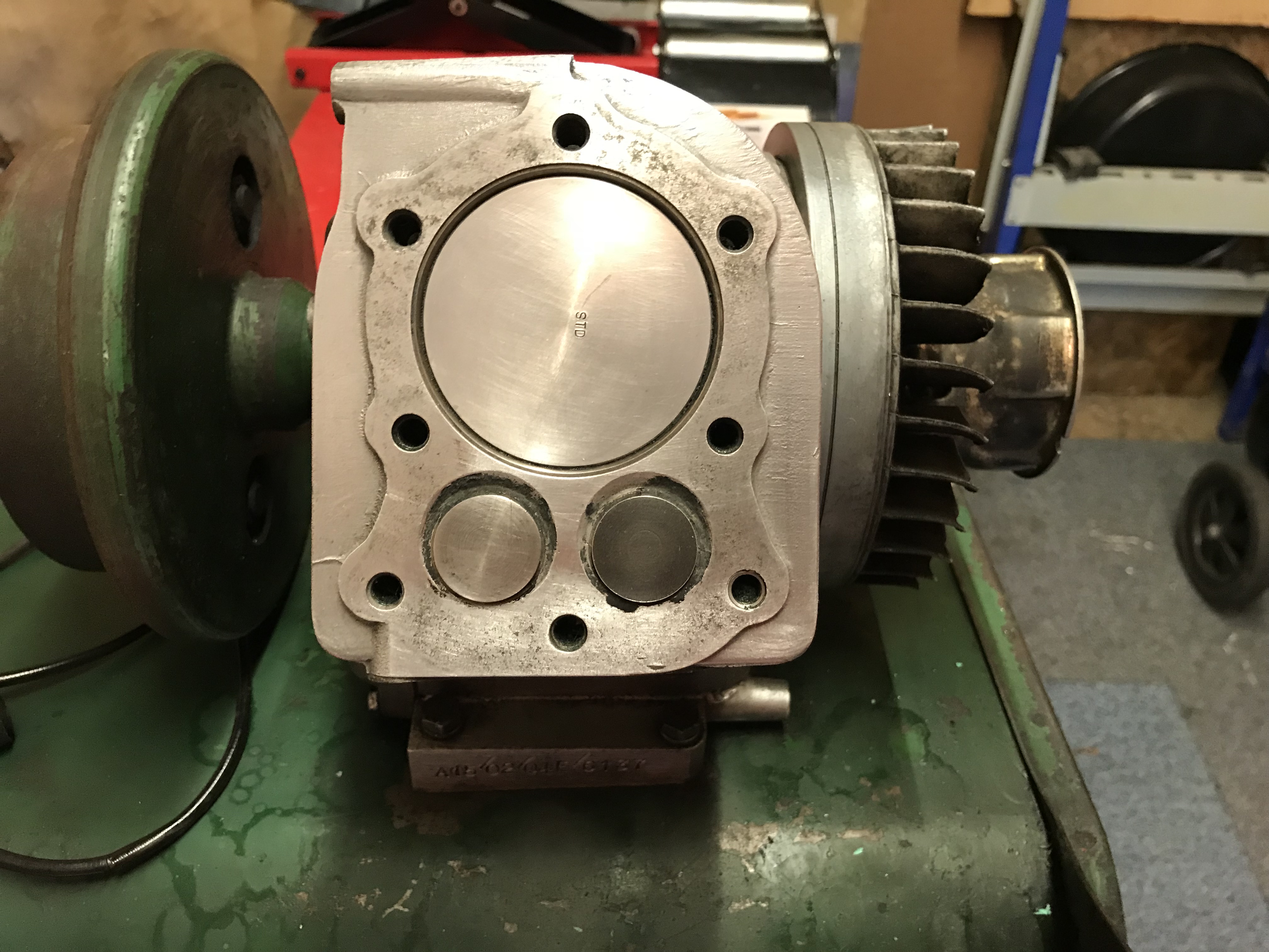 Removed the head, fair bit of carbon but bore looks good. I will decoke head, piston crown & ex port. I am getting .006 IN and .008 EX, inlet is spot on. I have ordered a valve spring compressor which I hope will fit...! Will then remove valves for checking and help :-)