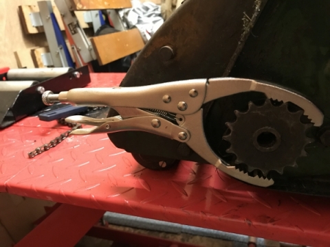 Had a go at dropping out the cutter until for overhaul. Old hat for the experienced I would assume but I found the cylinder drive sprocket quite difficult :-) so posting this for interest..First I tried a cheapo oil filter chain wrench which was laughably inadequate, then a grip type oil filter wrench which I could not get enough purchase on and was liable to slip and damage the sprocket, remembered I have a clutch hub holding tool and this worked really well, same as this off ebay -> https://www.ebay.co.uk/itm/Universal-Clutch-Hub-Holding-Tool-for-ATV-Mo…