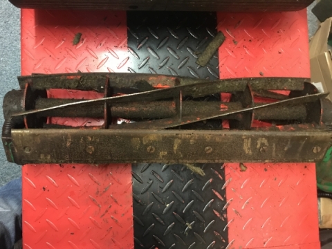 The cylinder barely turns by hand as it has been adjusted down to the extent that it contacts the bottom blade, taking the cutting unit apart tonight for sharpening & paint next week. I hope the blades are not damaged too badly?