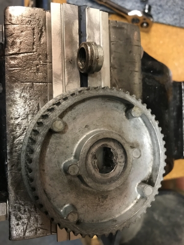 I got the pulley centre filled and slotted, much better fit and with the right nut tightened up it should not chew through!
